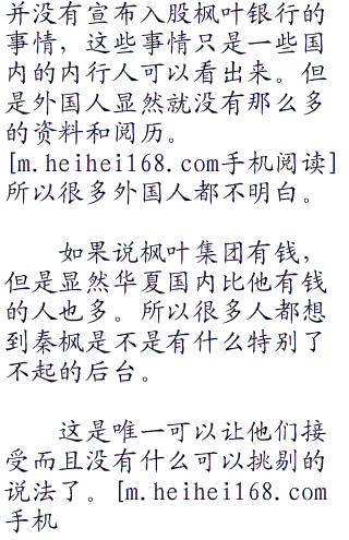 而且很明显这些国企前赴后继的往枫叶集团存款,如果说没有谁的指示的话,估计谁也不能信。