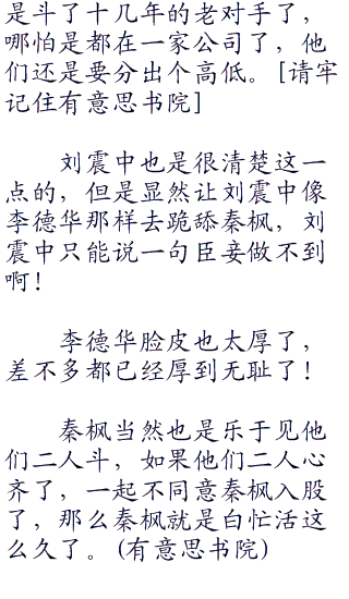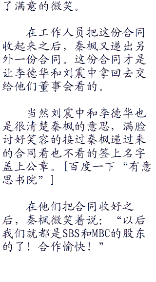 要知道今天他们来见秦枫就意味着明天他们两个就是在替秦枫打工了,虽然他们也是拥有电视台的股份,但是显然和秦枫一个人独占百分之五十一的股份而且不会去电视台里面任职务,他们更像是替秦枫打工的。