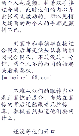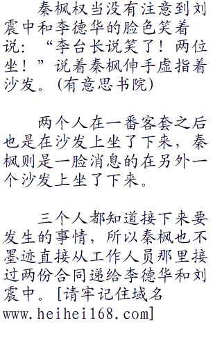 秦枫快走两步上前带着一丝歉意的说:“让两位久等了!抱歉!抱歉!”听到秦枫的话,李德华急忙满脸堆笑的说:“秦董日理万机,是我们打扰您了!”不得不说李德华在彻底打定主意同意秦枫入股sbs之后立刻就开始狂抱、腿了。