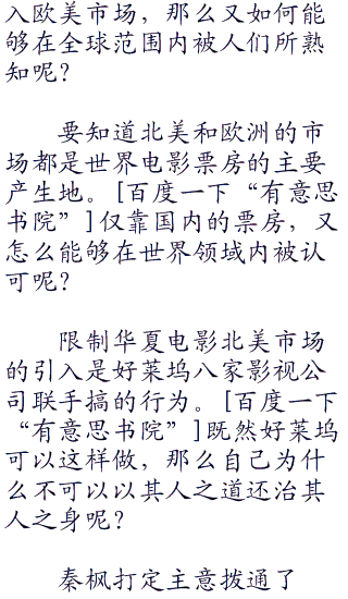 挂断白燕的电话,之后秦枫扶着额头开始想如何去反击。被好莱坞这么搞,不反击的话那就不是秦枫了。