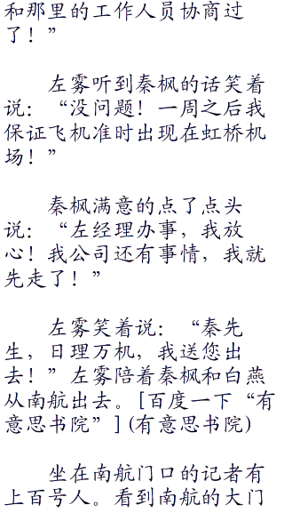 秦枫微笑着说:“到时候直接把飞机开到虹桥机场就行了!我已经