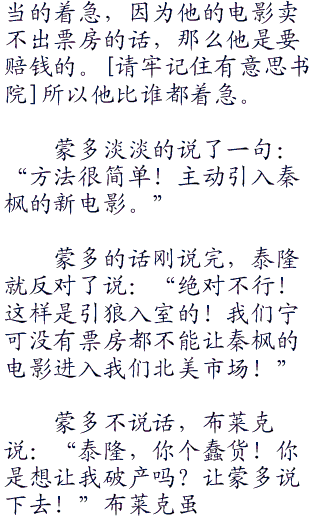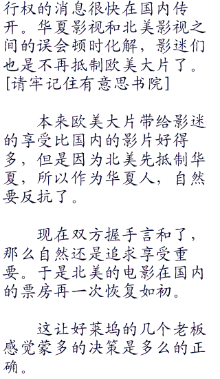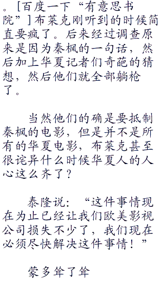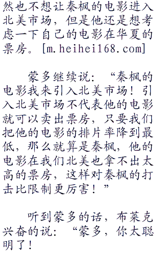 布莱克一脸郁闷的说:“我们环球引入华夏的电影现在都没有拍片了,而他们发过来的理由是三天没有卖出一张票!”布莱克说完自己都郁闷了,自己的影视公司引入的电影质量他是很有信心的。