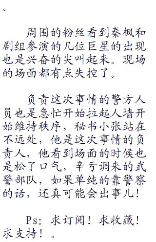 秦枫小声说:“你们先离开!”听到秦枫的指示,工作人员也是先离开了。看到这一幕,高雯有点疑惑的问:“你让他们走了,谁来掩护我啊?”
