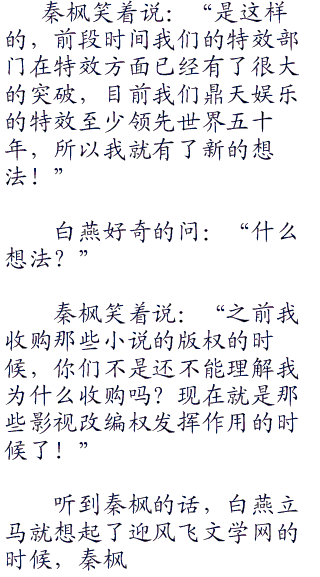 一时间两个人之间的气氛很暧、昧,秦枫和白燕之间的关系虽然大家都知道,但是也一直没有挑明。