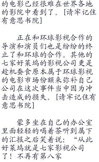 其余的七家影视公司为了保住自己的名声,巴不得这件事情和自己一丝丝关系都没有,所以和布莱克的关系一个比一个撇的清。