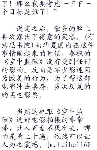 蒙多在第一时间将秦枫的《空中监狱》的排片率给提高到了比《侏罗纪世界》当时的排片率都要高。