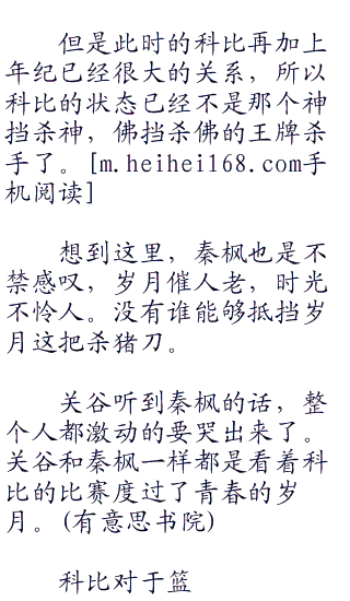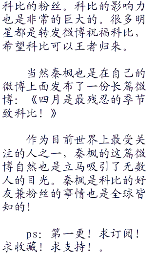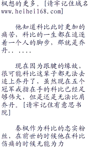 乔丹的时代对于秦枫来说有点遥远,但是科比却是伴随着秦枫的少年时期一起走过来的。