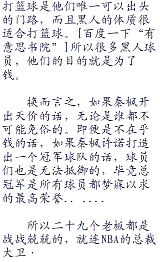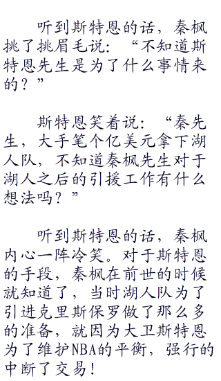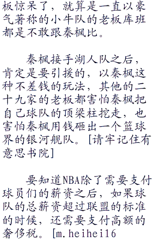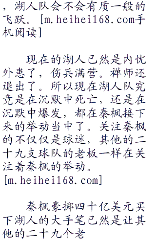 吉姆巴斯已经绝了引援补强的念头了,在吉姆巴斯看来科比已经是日暮西山了,但是摄于科比的统治力,他还不太愿意重建,抱有一丝幻想,但是对于这位抠门的老板,他心里念念不忘的还是自己的利益。