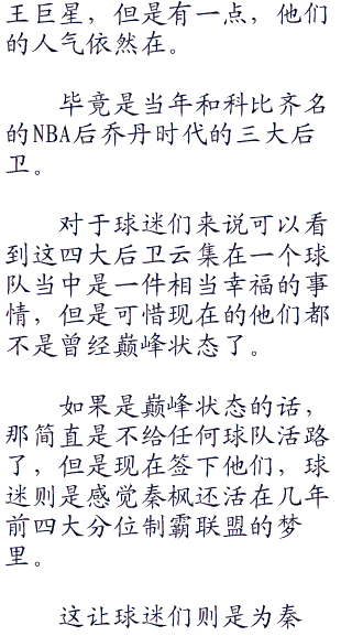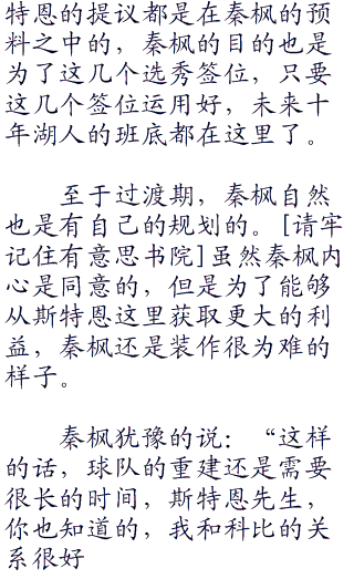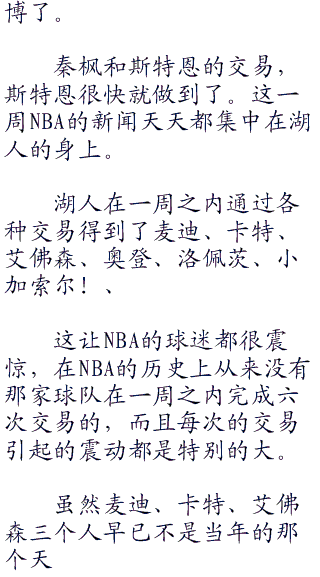 秦枫的话意思很明显,那就是我可以为了维持nba联盟的平衡不去做太过分的交易,但是也不能让我的湖人队成为鱼腩球队。