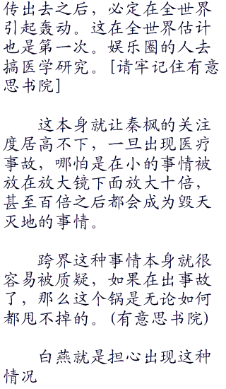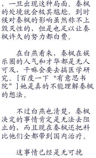 但是秦枫这次的跨界跨的有点太大了,直接从娱乐圈跑到医学界。这两者可是一点边都不沾的。