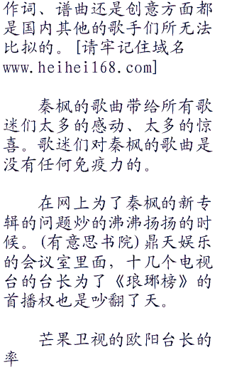 秦枫的作品一直是业内的良心制作。无论是小说、电影、电视剧。秦枫的歌曲也是这样的。