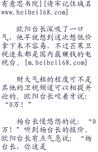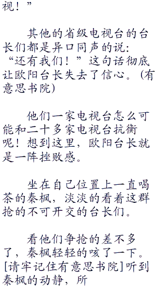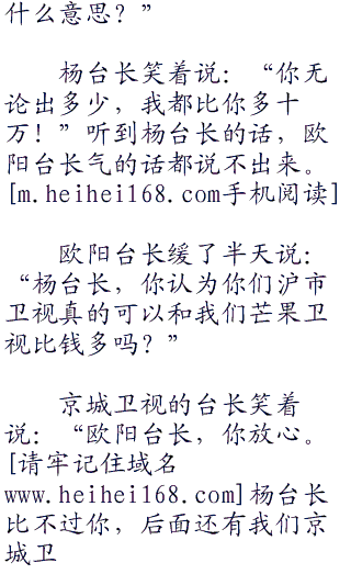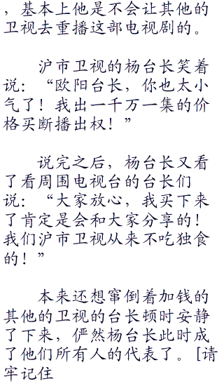 听到欧阳台长的话,其余卫视的台长都是倒吸了一口凉气,这个欧阳台长出手也太大