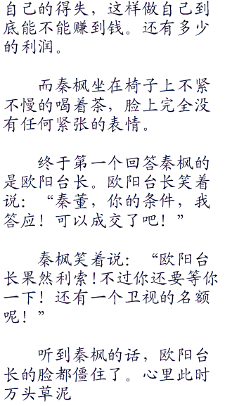 听到秦枫问价,这些台长一时间都是你看我我看你的。都不太愿意抢先报价。