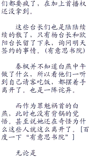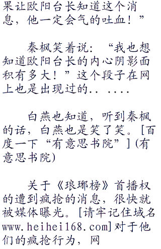 白燕解释回答说:“欧阳台长,秦董刚才说了播出权不卖!”