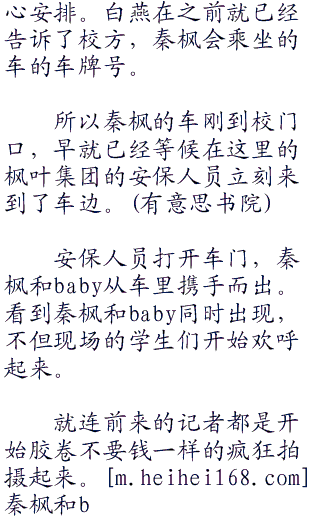在车里,秦枫笑着说:“baby,你今天真美!”听到秦枫的夸赞,baby顿时羞红了脸颊。