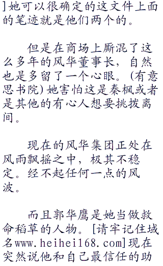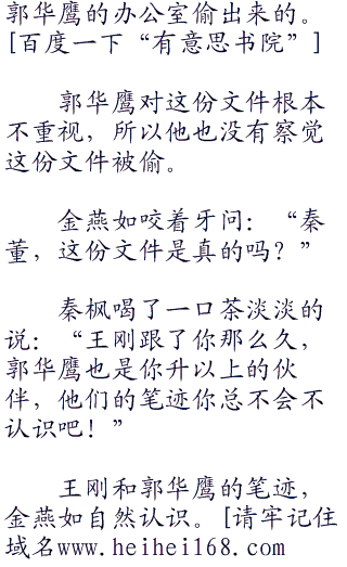 这份文件正是王刚和郭华鹰商议收购风华集团的协议,这份协议在白燕派人调查的时候,枫叶集团的人从