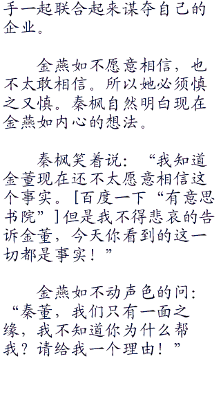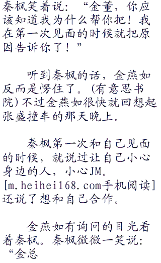 在服务员给三个人上完茶离开之后,金燕如笑着问:“不知道今天秦董约我见面是有什么事情吗?”