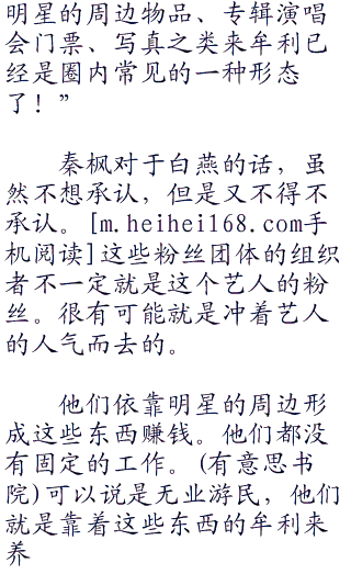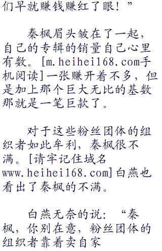白燕没好气的说:“这些粉丝团体的组织者赚钱赚疯了,一张专辑我们给粉丝团体是华夏币,他们出手的价格是华夏币。一张专辑赚华夏币!你的粉丝那么多。已经卖出了上百万张专辑了,他