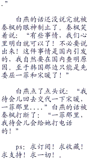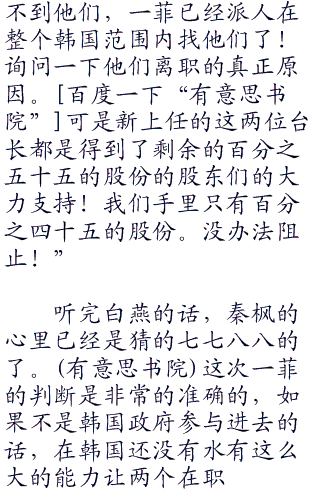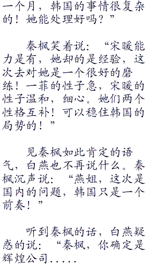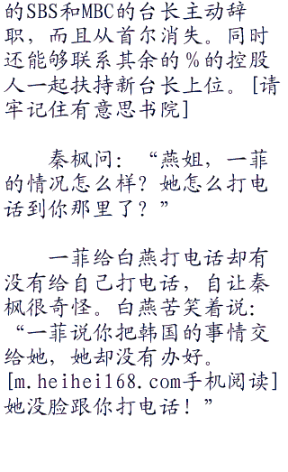 白燕回答说:“刚才一菲打电话回来说sbs和mbc两个电视台出问题了,和我们签订合同的两个台长全部离职了!新上任的台长和我们明显不对付!”