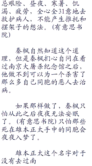 因为在南京被屠杀的华夏军民不允许!因为那些华夏军民的在天之灵在看着秦枫。