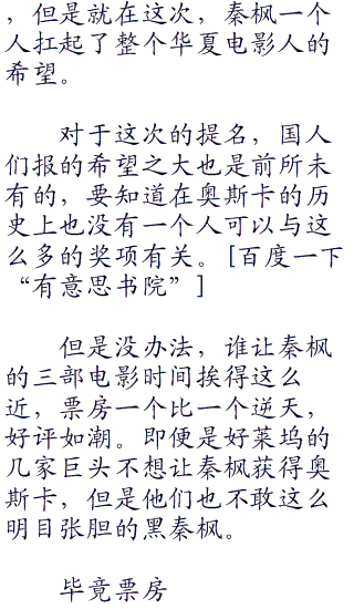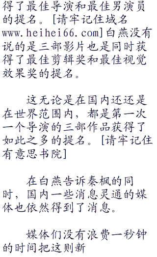 而现在秦枫一个人的三部电影全部获得了提名,而秦枫本人也获