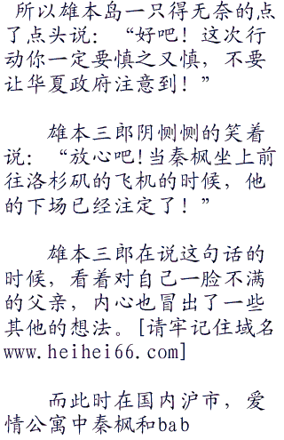 看到雄本正太挥手示意,雄本岛一知道他的父亲要和身边的两个年轻女子做一些少儿不宜的事情,很自觉的带着自己的儿子离开了。