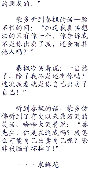 但是显然秦枫也知道现在不是和蒙多翻脸的时候,秦枫笑着说:“哎呀,蒙多先生,你稍等,我现在就下去请您进来!”