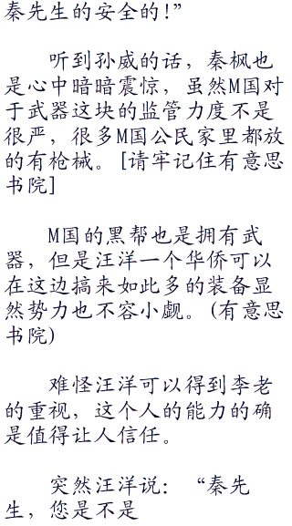秦枫点了点头说:“这些相关的消息还要靠汪先生帮忙了!”汪洋回答说:“秦先“八六七”生,你放心。我已经给孙威他们送过去了一批武器,都是现在国际上最先进的武器装备!”