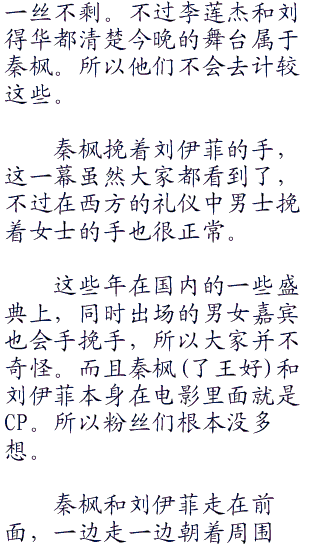 秦枫之前已经有在戛纳走红毯的经历了,显得不慌不忙。不过他身边的刘伊菲就没有那么从容淡定了。