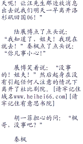 秦枫转身对低声陆展博说:“展博,你现在去希尔顿酒店帮我订两个紧挨着的包间!然后告诉孙威让他带着人准备行动!”