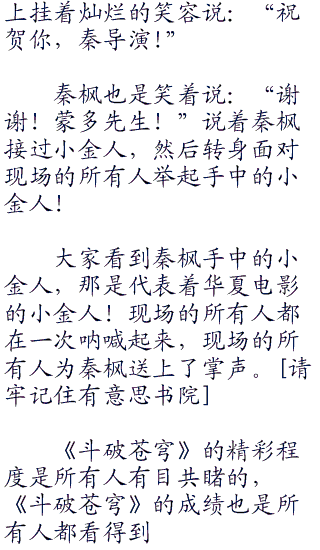 秦枫在蒙多离开之后,才回到自己的座位上。回到座位上的秦枫看到蒙多已经回到自己的座位上正在和身边的几个老板说着什么。