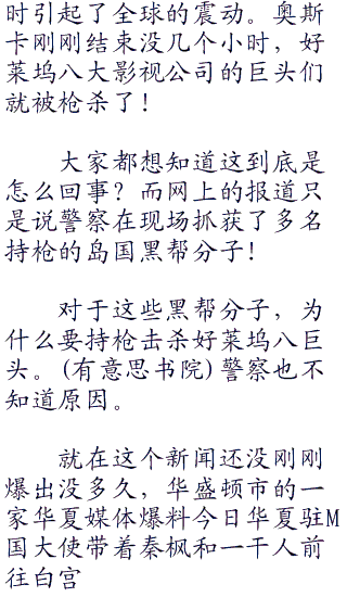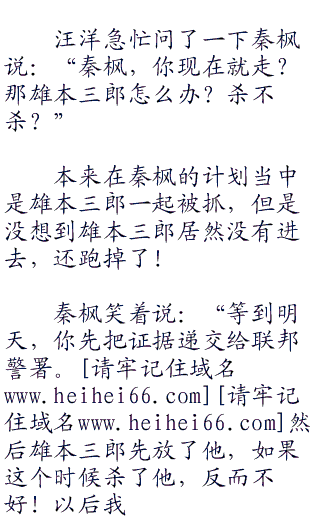 大家都知道秦枫说的没错,这次雄本三郎的手下杀了好莱坞八大影视公司的老板。这个案件到了明天就会成为全球最爆炸的新闻。