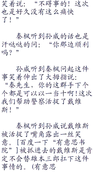 到时候,m国政府肯定是要追查到底的,那么雄本三郎肯定是跑不掉的,再加上现在已经被送到警察局里面戴维斯。
