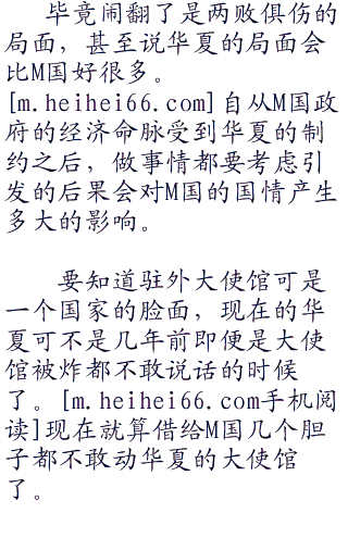 虽然说华夏不敢轻易的那样做,自然的m国在面对华夏的时候也是需要收敛很多。