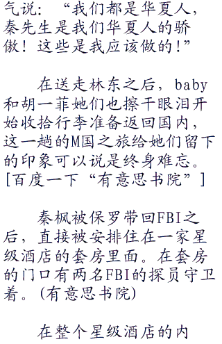虽然有上面的命令,但是如果秦枫不配合的话,即便他们是fbi也不敢在华夏的大使馆内强行抓人。
