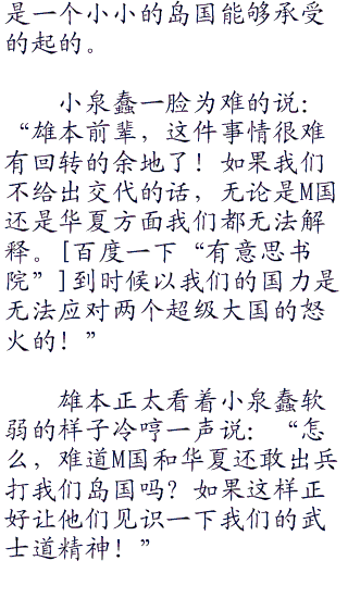 岛国首相小泉蠢看着眼前脸色变得苍白的雄本正太,心里也是很不是滋味。