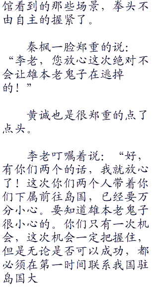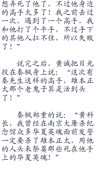 秦枫见黄诚认输也笑着退后了几步说:“黄科长,承让了!”听到秦枫的话,黄诚无奈的笑了笑说:“秦先生的少林金刚掌炉火纯青,内力和拳劲都比我高不止一筹,没办法,打不过!”