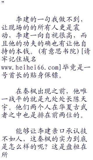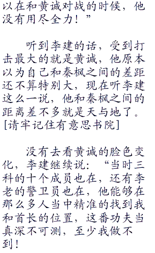 不过李建继续往下说:“可是刚才我看到秦枫的眼神几次都飘向我和首长呆的屋子这边的时候,我就开始隐藏了气息,但是秦枫似乎不但察觉到我的存在,而且还知道我是一个高手!所