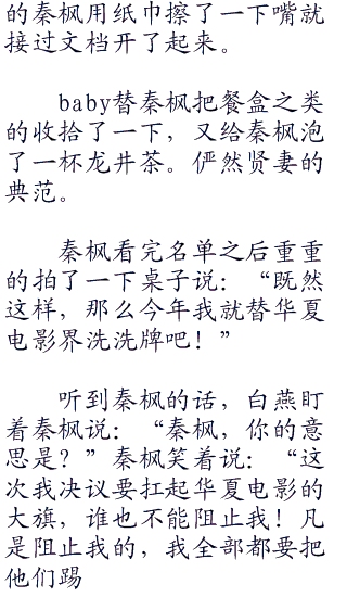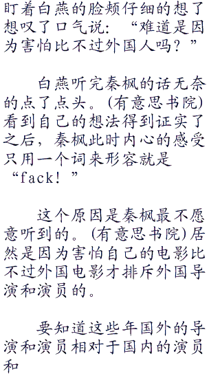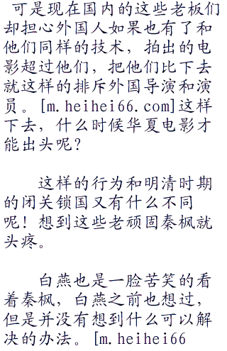 白燕苦笑12着说:“就是另外一部分比较难搞定,这些大多都是影视公司的老板们,年龄比较偏大!他们不支持的原因其实很简单。”
