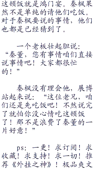 虽然他们大概都能够猜到秦枫请客的目的是为了说服他们同意外国人加入联盟。