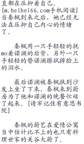 秦枫轻轻的趴在诺澜的肩膀上在她耳边用极其轻微的声音说:“你刚录制完节目,那么累。去休息吧!晚饭我来做!”