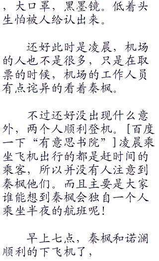 秦枫听到诺澜肯定的回答在她的脸颊上轻轻的吻了一下。诺澜趴在秦枫的怀里问:“咱们什么时候回去?”
