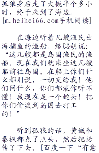 络腮胡点了点头说:“那好,全部跟我来!船就在海边!”说完扭头就走。