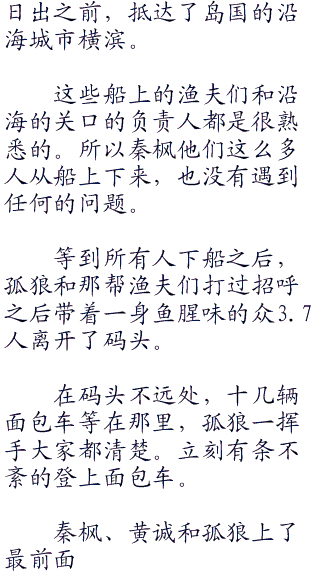 黄诚对秦枫说:“天狼,跟上!我们现在渡海!”听到黄诚的话,秦枫点了点头。