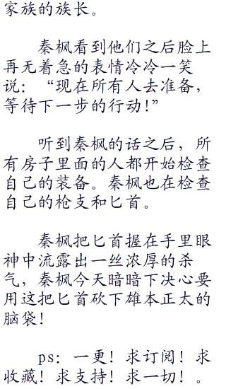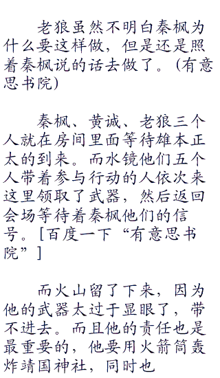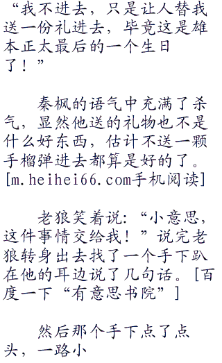秦枫和黄诚在雄本大酒店周围观察了一圈之后,接到老狼的讯息之后赶到了老狼呆着的房子里面。