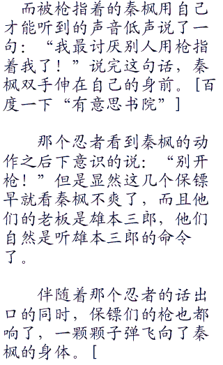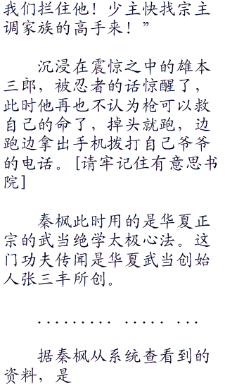 但是现在秦枫的目标显然就是自己家族的少族长雄本三郎。这些忍者他们存在的意义就是护卫雄本家族的安危。