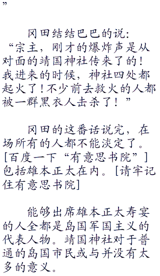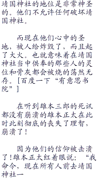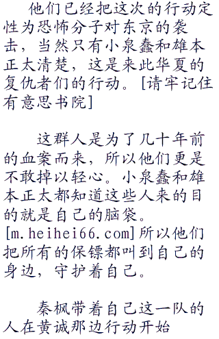 不过外面的山口组的成员则是很快就进来向他们汇报情况。雄本正太脸色凝重的问:“冈田,外面是什么情况?”