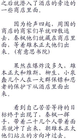 酒店当中的人也都是非常的诧异,雄本正太他们几个人都是面面相觑。