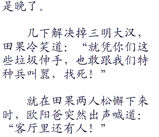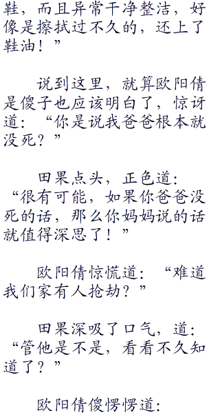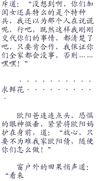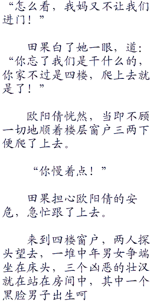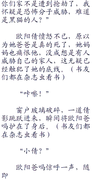 欧阳倩神色慌张,今早从家里你打来的电话,通知他父亲病危,这可把她给急坏了。