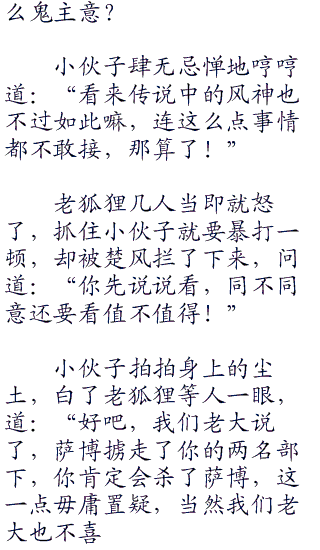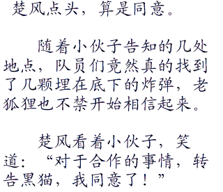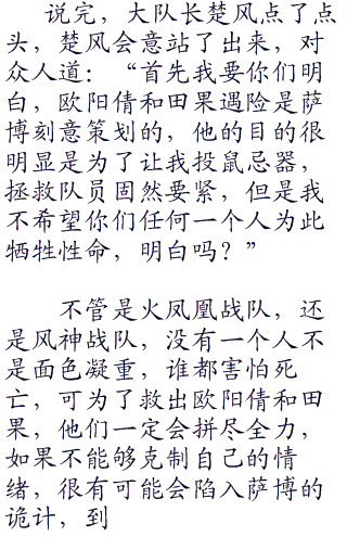 老狐狸放下电话,正巧楚风走进作战室,老狐狸将欧阳倩遇上萨博的事情详细说明。